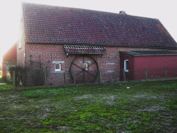 Aan de zijgevel van de haaks op de weg (Romont 11) staande hoevewoning bevindt zich nog een ijzeren hondenwiel met houten tredplanken. Het rad dreef vroeger een karnton aan. De diameter is 250 cm, de loopbreedte 33 cm en is beschermd onder een kleine luifel met dakpannen. Het gebouw en het wiel zijn zeer goed onderhouden,