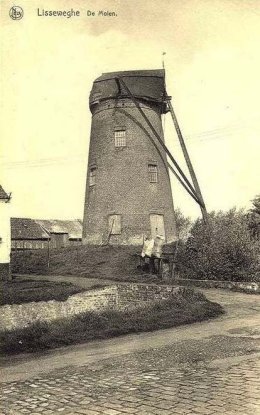 Al in 1429 stond hier een staakmolen, de Dorpsmolen van Lissewege. In 1555 werd hij dan vermeld als liggende wip bij het Sint Jorismaeyken of Sint-Jorisbilkske. Sint Joris was de patroon van de schutters en de gaaien werden op de wieken geplaatst. De Dorpsmolen was gelegen aan de zogenaamde "Tiendenbrug" over het Lisseweegs Vaartje, de naam van de brug verwijst naar de tiendenheffing, tot 1568 uitgevaardigd door de Franse Sint-Bertinusabdij.