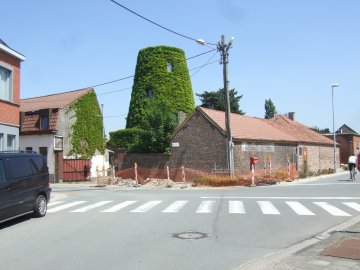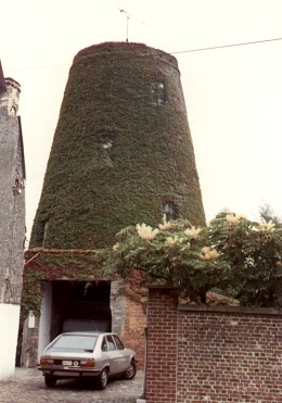 Thans resteert nog de volledige molenromp, die met klimop begroeid is.