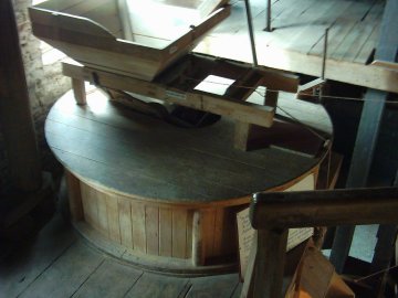 De maalvloer is een balkconstructie door gemetselde muurtjes onderstut en bereikbaar via een trap met leuning.