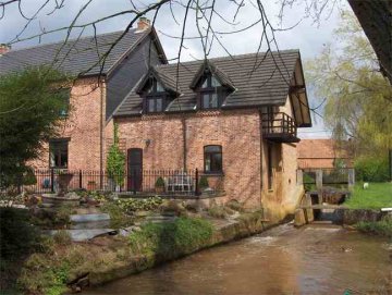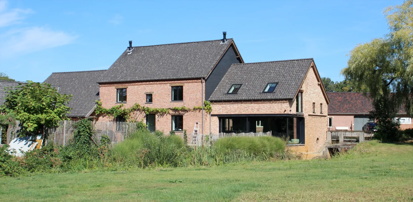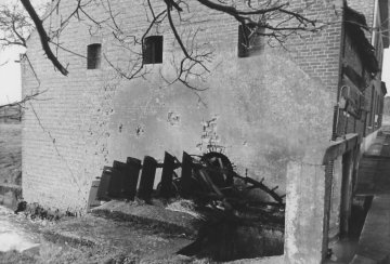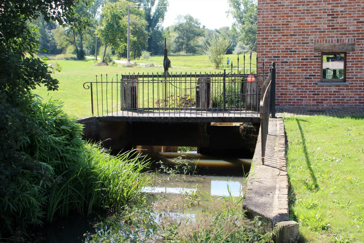 - Bakstenen gebouw, dwars op de waterloop