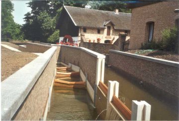 Na de overstromingen van 1998 werden de taluds aan de molenkant zwaar beschadigd. In 2001 werd een bypass met vistrap gebouwd rond de molen. Deze bypass dient in eerste instantie om bij verstoppingen van de molensluis geen overstromingen te krijgen. In die bypass werden een achttal bekkentrapjes gebouwd tussen de 10 en de 15 cm hoog.