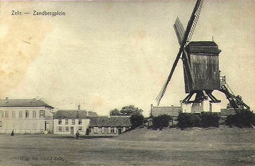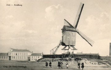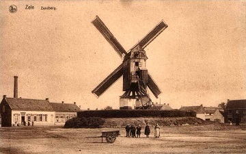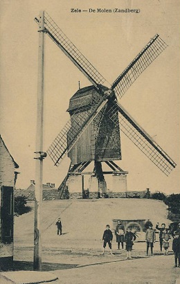 De houten korenwindmolen, later ook gekend als de “Zandbergmeulen” werd al vermeld in de 14de eeuw. In de 16de eeuw behoorde deze toe aan Frans Mettepenninghen.