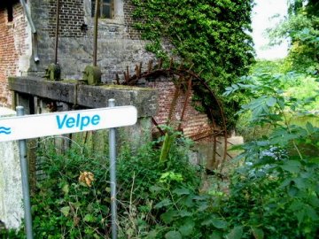 De eerste watermolen werd dus kort na1422 gebouwd, op een honderdtal meter van de bedding van de Oude Velpe. Daarna groef men 400 meter stroomopwaarts van de oude Velpe een kanaal, waardoor men kon stuwen en een waterval van zo'n 2 meter verkrijgen om het waterrad aan te drijven. De Ferrariskaart van ca. 1775 vertoont de twee waterlopen.