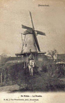 - 1849, opbouw: Smits-Deckers Arnoldus, molenaar te Brasschaat ("nouvelle construction sur terrain vierge d'une maison et d'un moulin à vent à farine")