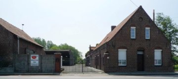 Opstelling: groepering van losse, lage bestanddelen rond een deels verhard erf; langgestrekt boerenhuis ten noordwesten: erftoegang aan de straat, gemarkeerd door middel van bakstenen hekpijlers; recente loods ten zuiden van het erf.