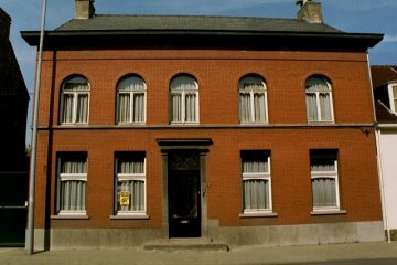 Voormalig burgerhuis. Woonhuis van vijf traveeën en twee bouwlagen onder zadeldak (kunstleien). Voorgevel met asymmetrische dubbelhuisopstand. Lijstgevel op hardstenen plint, voorheen gepleisterd en geschilderd met imitatiebanden op de pui, geblokte hoekbanden op de bovenverdieping en aflijnend hoofdgestel met houten kroonlijst. In het tweede of derde kwart van de 20ste eeuw vereenvoudigde voorgevel door het aanbrengen van een nieuw bakstenen parement, met behoud van de originele muuropeningen (gewijzigd schrijnwerk). Rechthoekige benedenvensters nu met schuiframen, rondboogvormige bovenvensters op hardstenen kordonlijst. Rechthoekige deur in arduinen omlijsting met pilasters op neuten met deurbelhendel en afgedekt door een bekronend hoofdgestel. Rechts naast de deur arduinen gedenksteen met moeilijk leesbaar opschrift “J.F. Baeten/ Blancquaert 1856”. Daaronder in de brede deurdrempel verwerkte rest van een oudere jaarsteen met opschrift “ANNO”.
