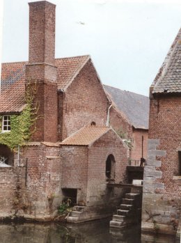 Molen: Galmaarden (Vl.-Brab.), Driscartmolen, Gemelingenmolen - dubbelmolen (koren- en oliemolen) met thans 1 metalen onderslagrad met houten schoepen