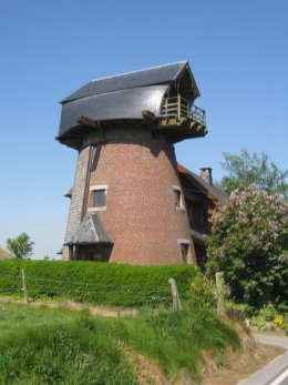 Situé sur la route conduisant à l'ancienne gare de chemin de fer, à un coup de fusil de la ferme de la Converterie, il est vraisemblable que ce sont les moines convers, occupant les lieux à cette époque (XVII°s.), qui le construisirent. Ce moulin à vent circulaire, bâti en briques chaulées était transpercé par deux portes massives et pourvu de minuscules fenêtre à linteau droit.