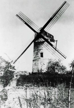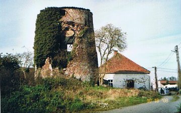 1864: le moulin à vent, sur maçonnerie, est situé près du chemin de Basècles à Tourpes et de la Chapelle de N.D. de Grâce.