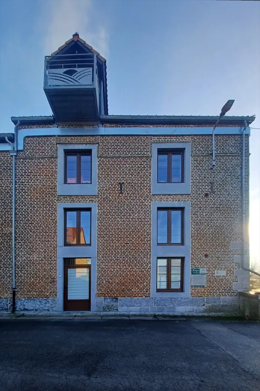 La construction qui date de la fin du XVIIIe siécle est située au bord de la Méhaigne dans un cadre particuliérement verdoyant. Au XVe siécle, à cet endroit, soit à la limite des localités de Ville-en-Hesbaye, Braives et Avennes il y avait une taverne.