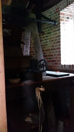- Molenas met vangwiel zonder kammen en Vlaamse blokvang, vang met vangtrommel, 1 koppel kunststenen en haverpletter met riemaandrijving op het gelijkvloers
