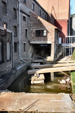 - Tijdelijk ook papiermolen. Afdak boven het waterrad