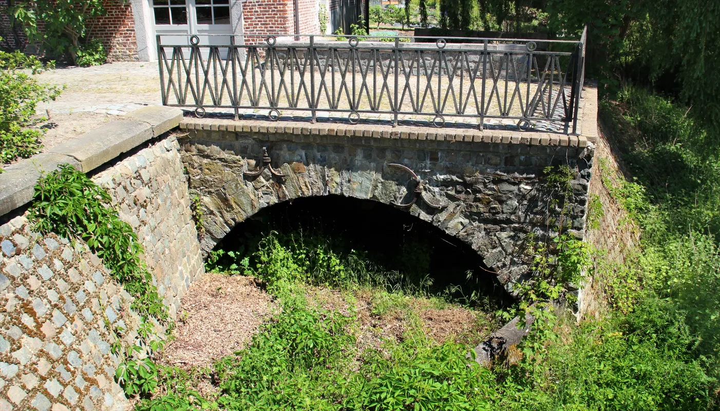 Het 15 are omringende terrein werd omgevormd tot een middeleeuwse moes- en kruidentuin met meidoorn- en mispelhagen, een kleibakstenenterras en de “konkel” (het spaarbekken en de oorspronkelijke samenloop van Zuun- en Gaspeldoornbeek) heraangelegd. Naast aanplantingen van fruit- en loofbomen versiert een kopij van een functionele kleien broodbakoven uit Bokrijk dit geheel. Eveneens is een parkeerruimte in originele kasseien voorzien.