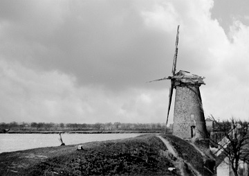 Daar staat hij stijf de molen,