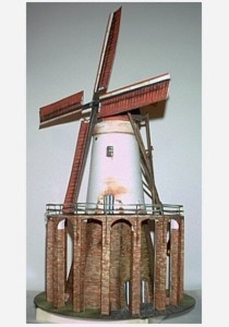 Het model gaf me dermate voldoening, dat het me opkwam er een bouwplaat van te maken. Belangstellenden kunnen dan ook zelf de molen “bouwen”, op schaal uiteraard. Deze heel stevige, in kleur gedrukte bouwplaat is vanaf januari 2004 beschikbaar. (ME).