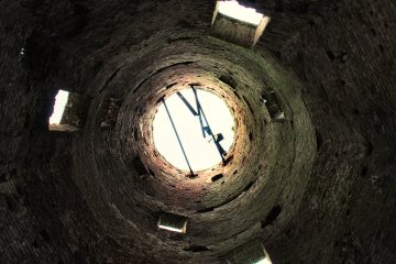 - Achtzijdige stenen onderbouw, ronde bovenbouw, (verdwenen) stenen galerij