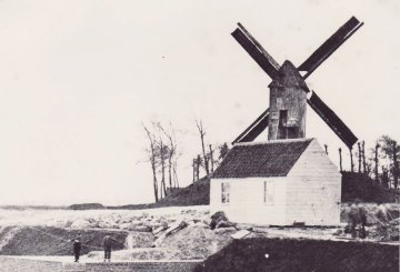Er bleef een foto bewaard, waarbij we rechts de molen in werking zien (met vier volle zeilen) en links de Sint-Laurentiustoren, in de volksmond "Duvetorre" aan de huidige Willem de Roolaan, waarvan de ruine nog bestaat.