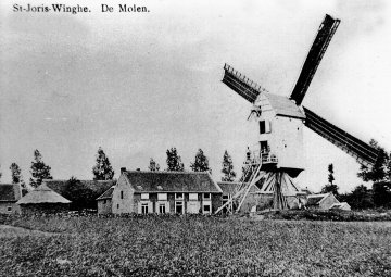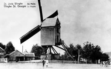 Chromo in: Henri Liebrecht, Quelques Traditions et Coutumes du Folklore Belge, volume 2, Bruxelles (Côte d'Or, Usines Alimenta, Rue Bara, 40), 1950. Onderschrift: Vinghe (sec) Saint-Georges. Le moulin à vent est toujours en activité. De tekenaar was lid van de l'Académie Royale de Langue et de Littérature Français). De chromo's konden ingekleefd worden.