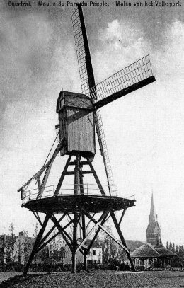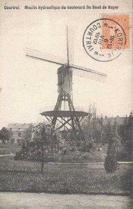 Het molentje werd in 1910 gedemonteerd en in 1911 heropgericht naar het Astridplark te Kortrijk, waar hij in 1942 vernield werd door een windvlaag. Een andere bron vermeld dat de molen vernield werd in 1940.