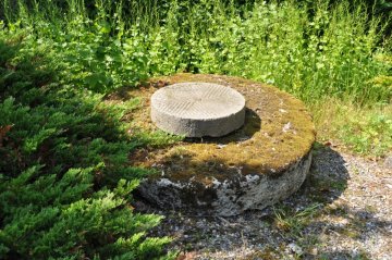 Par contre, cinq belles pierres de meules de différents diamètres ornent le jardin.