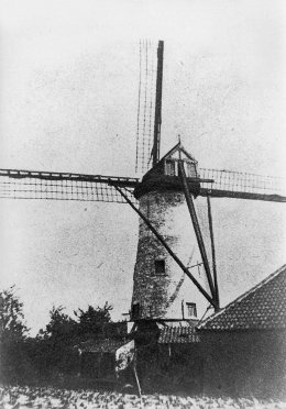 .De bewering van sommige vroegere auteurs dat daar oorspronkelijk een staakmolen stond die bij de inval van de Fransen in 1794 werd vernield, klopt niet. Op de Ferrariskaart van ca. 1775 is op deze plek geen molen of molenwal te zien.