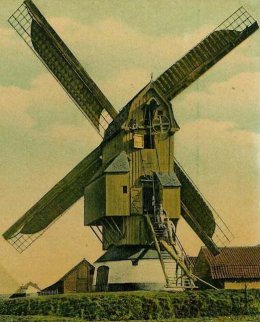 Sous l'Ancien Régime et jusqu'à leur destruction en 1914-1918, les moulins à vent de Warneton étaient groupés le long de deux axes: la chaussée d'Ypres et la chaussée de Lille. Cette multiplication en des lieux proches était due au statut des terres: la seigenurie de Warneton voisinait là d'autres fiefs. Des cartes des années 1720-1730 montrent bien l'emplacement de ces moulins dont un moulin à vent cité dès 1316.