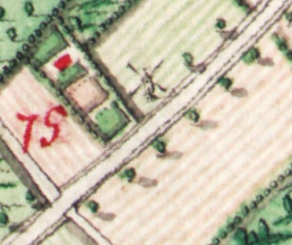- Ferrariskaart (ca. 1775) met het bruin symbool van een staakmolen
