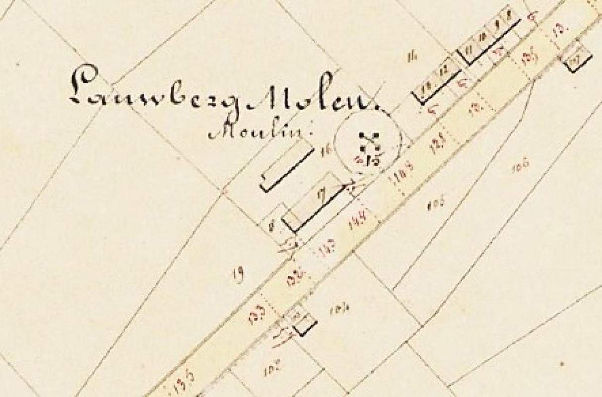 - in de Atlas der Buurtwegen (ca. 1844) als "Lauwberg Molen, Moulin"