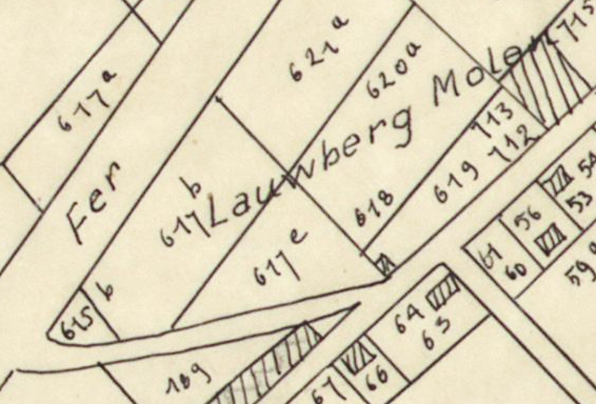 - op de kadastrale kaart van P.C. Popp (ca. 1850) als "Lauwberg Molen".