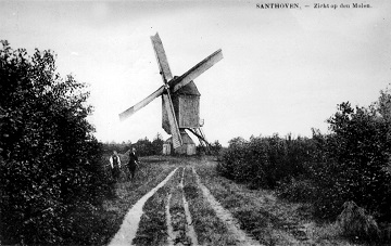 We zien de molen aangeduid op de Ferrariskaart (ca. 1775) met het bruin symbool van een standaardmolen onder de benaming "Moulin de Santhoven", op de Atlas der Buurtwegen (ca. 1844), op de topografische kaart van Vandermaelen (ca. 1850) als "M(oul)in de Santhoven" en op de kadastrale kaart van P.C. Popp (ca. 1870).