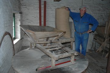 - 2 koppels maalstenen, 2 haverpletters, graankuiser, walsenstoel
