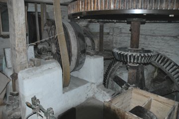 Houten maalvloer met een bewaarde maalstoel van de vroegere drie. Naast het koppel Jaspers-maalstenen ligt er nog een Frans koppel maalstenen (uit La Ferté). Er zijn twee haverbrekers, een graankuiser en een walsenstoel die werkt met een elektromotor maar ook met waterkracht. Verticale as met houten kroonwiel. Muurschilderingen op bepleisterde oostelijke wand met voorstelling van monstrans, enkele primitief weergegeven figuurtjes, naam Pieter.