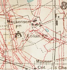 Tijdens de eerste wereldoorlog noemden de Engelse soldaten de boerderij "Eolian Farm" of "Aeolian Farm", precies omwille van de aanwezigheid van de windmolen. De boerderij met de windmolen werd vernield in 1914. Thans staat er een wederopbouwhoeve.