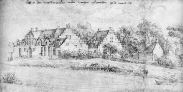 P. Vitzthumb, Lavistekening, 1786 ("Moulin à l'Eau dit de St Michel entre Vilvorden et Marli, appartenant à la ville de Bruxelles. On voit les 3 fontaines et l'Eglise de Vilvorden dans le lointain").