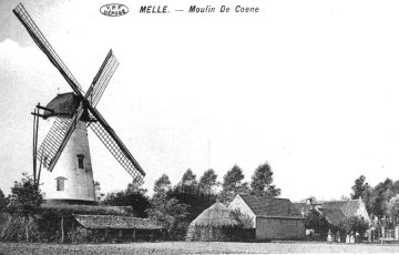 - 23.02.1909; verkoop: De Coene-Fouquaert Eugène Emiel, molenaar te Melle (notaris Hebbelynck - stenen graanwindmolen)