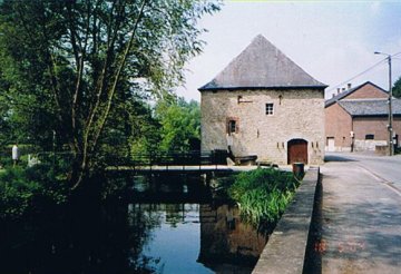 Ce moulin, créé en 1822, appartenait au domaine du château de Hodbomont. L'eau puisée dans le ruisseau actionnait le moulin à farine. En 1860, le bâtiment a été désigné comme simple grenier à grain et utilisé plus tard pour actionner les machines d'une scierie. Quoique rouillée, la roue est toujours là !
