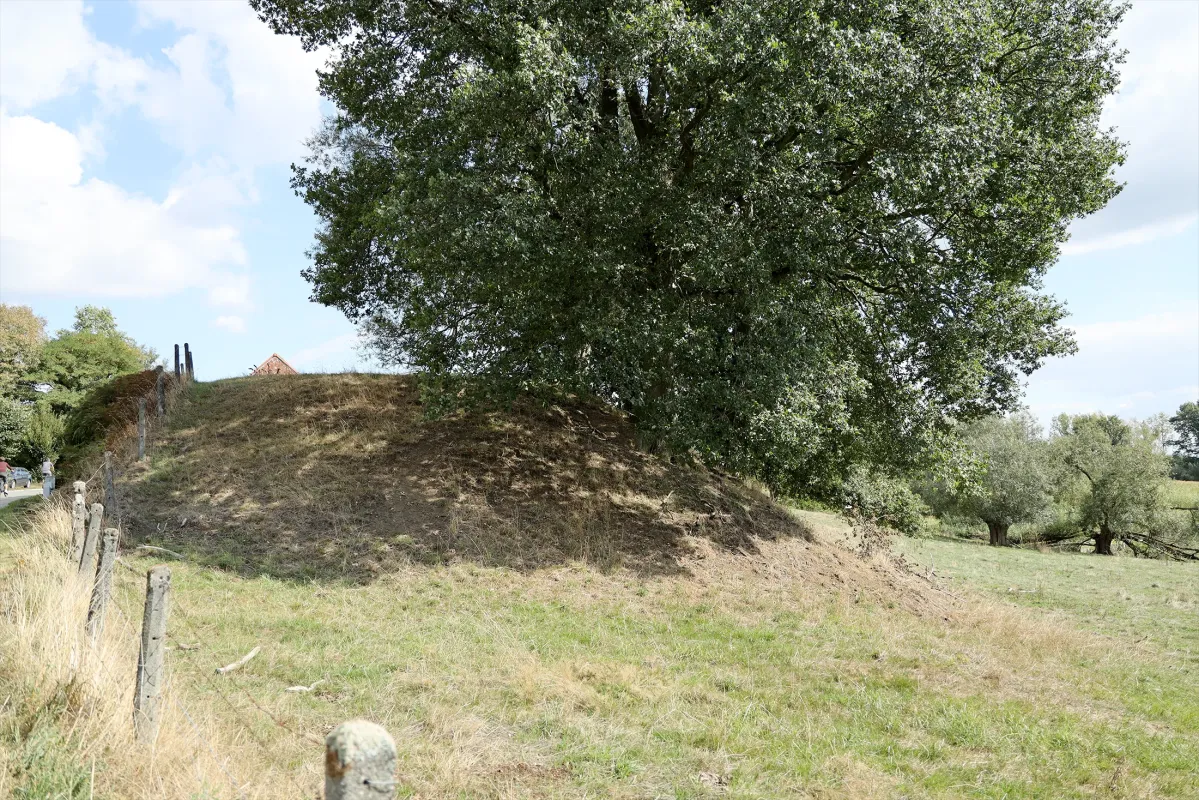 De waterbakken op de weide dateren nog uit de tijd van de werkende molen, om de paarden te laten drinken. Er ligt nog één molensteen op de zijkant van de molenheuvel