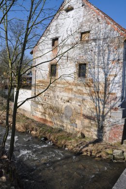 Aan het huidige gebouw bemerken we nog duidelijk de werking als watermolen, met name aan de watergevel met natuurstenen basis: vooraan langs de trap arduin en in de gevel gele zandsteen. Het ronde gat of het asgat waar de wateras doorliep is nog aanwezig.
