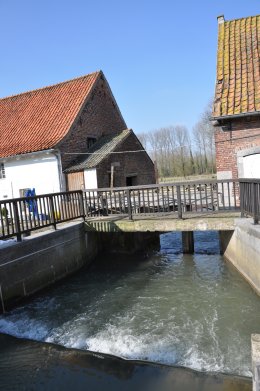 De molen is gelegen in landschappelijk waardevol agrarisch gebied. Bij de molen werd een nieuwe klepstuw aangebracht: normale stand = 27,70 m, maximale stand: 27,70 m (pegelpeil : 28,06 m). Stroomafwaarts van de klepstuw wordt een verval gecreëerd van 1 meter. Op de rechteroever langs het molengebouw is een bypass die eventueel terug in verbinding kan worden gesteld.