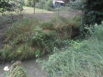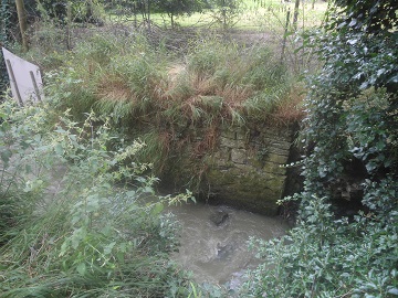- sporen van de oude watermolen (muurfragment in Doornikse kalksteen)