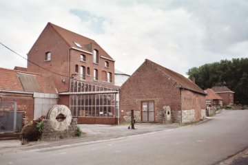 La roue a disparu. Une annexe est établie en bordure de la voirie. Quatre meules ont été préservées et érigées en décoration à l'extérieur (de part et d'autre des accès qui s'ouvrent de chaque côté de l'annexe).