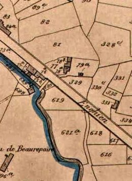 In de Kadastrale atlas P.-C. Popp (ca. 1860) staat de "moulin à eau à farine" op perceel B75C in het bezit van Desenfants Melof, propriétaire, Soignies.