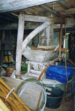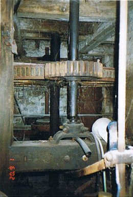Het vroegere waterrad werd in de 19e eeuw door een turbine vervangen. De molen stopte met malen in 1945. Het interieur is nog aanwezig.
