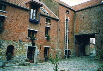 La cour est encore fermée par une habitation construite probablement vers la fin du 19e siècle. Le même dénivelé fait que cet immeuble présente une allure "normale" du côté de la chaussée mais une élévation à caractère nettement plus industriel du côté de la cour.