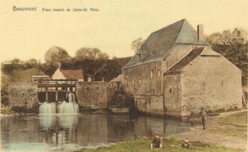 Son aspect initial nous est restitué par une gouache d'Adrien de Montigny de 1597, contenue dans un album de Charles de Croy. A l'époque, le moulin était banal pour les gens de Solre-Saint-Géry et de Leugnies. Une ordonnance seigneuriale tenta à cette époque de réglementer l'utilisation des vannes dont l'usage inconsidéré provoquait de fréquentes inondations dans les prés voisins; mais ce problème devait subsister jusqu'à la fin du XIXe siècle.