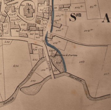 Un bâtiment à usage agricole existe toujours mais a été complètement vidé de son équipement et largement remblayé. On peut y lire les millésimes 1780 et 1826.