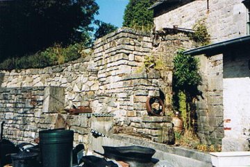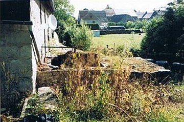 L'extrémité du bief d'amenée est toujours en place. Elle comporte un portique en grands monolithes de calcaire. Y est assoicé le dispositif permettant de relever de manière l'admission d'eau sur la roue de moulin.