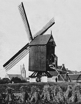 - Ferrariskaart (ca. 1775) met het bruin symbool van een staakmolen