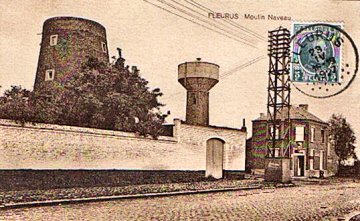 Le moulin Naveau est situé à l'intersection de la chaussée de Charleroi et de la rue de l'Observatoire près du château d'eau à Fleurus.